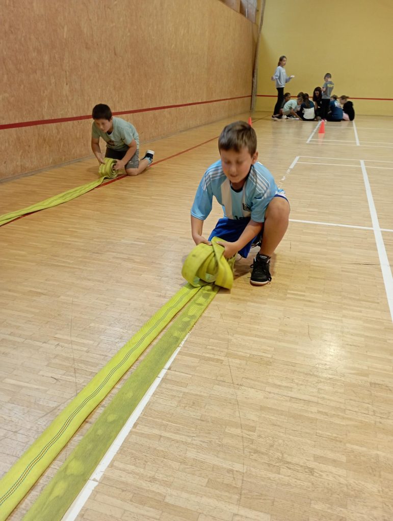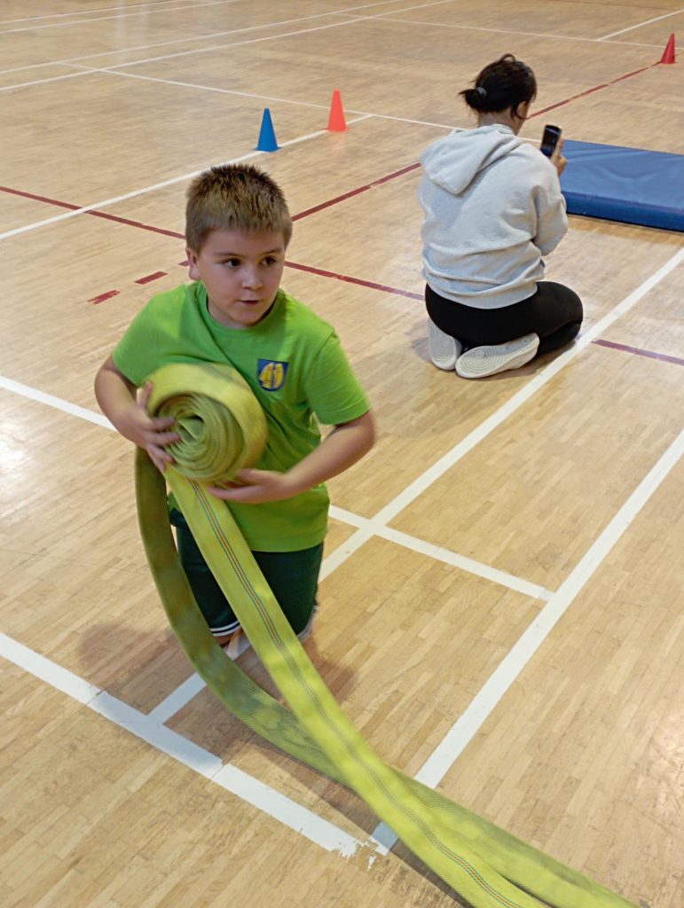 V pátek 26. září 2025 se tělocvična naší školy proměnila v hasičské stanoviště! Letos jsme opět první sportovní den zaměřili na téma „Malý hasič“. Děti si tak mohly vyzkoušet, jaké to je být opravdovým zachráncem – pomáhat druhým, být rychlý, šikovný a hlavně spolupracovat v týmu. Během dne na ně čekala řada zábavných úkolů: prolézaly „zakouřeným domem“, přenášely „vodu“ k požáru, navíjely hadice, zachraňovaly kamaráda, učily se základy první pomoci a také si zopakovaly, jak správně volat na tísňové linky 150 a 112. Nešlo jen o pohyb, ale i o důležité dovednosti z oblasti zdravovědy, spolupráce a zodpovědnosti. Děti se zapojily s obrovským nadšením – běhaly, smály se a povzbuzovaly navzájem. Sportovní den rozvíjel jejich obratnost, vytrvalost, sílu, rovnováhu i spolupráci v týmu. Nechyběl ani prostor pro fantazii a hraní rolí – malí hasiči si zkusili, jaké to je chránit druhé a být hrdinou dne. Na závěr každý účastník obdržel průkaz malého zachránce. Odměnou největší však byl úsměv a spokojenost všech dětí. Celý den se nesl v přátelské atmosféře a potvrdil, že učit se novým dovednostem lze i hravou a zábavnou formou.