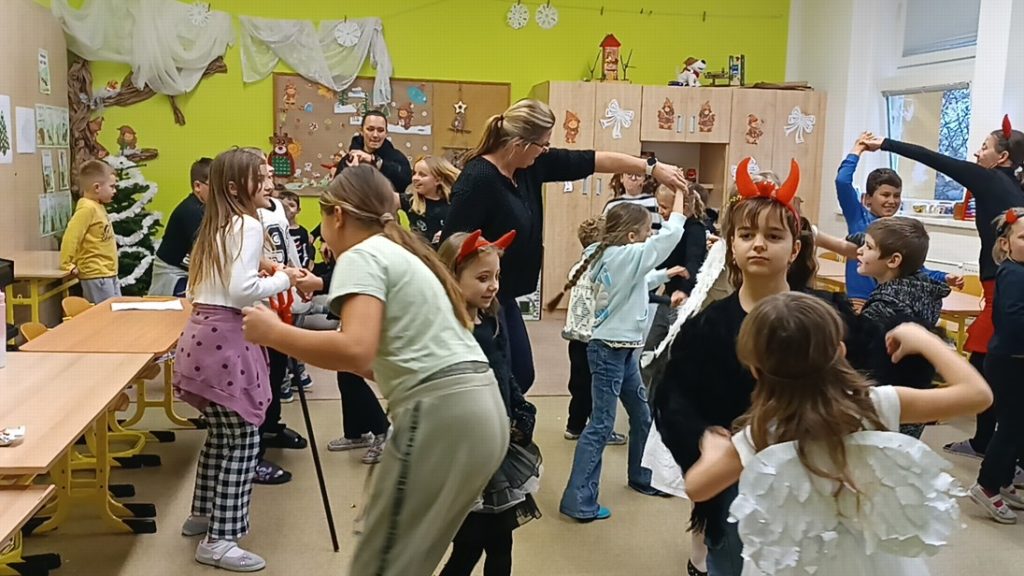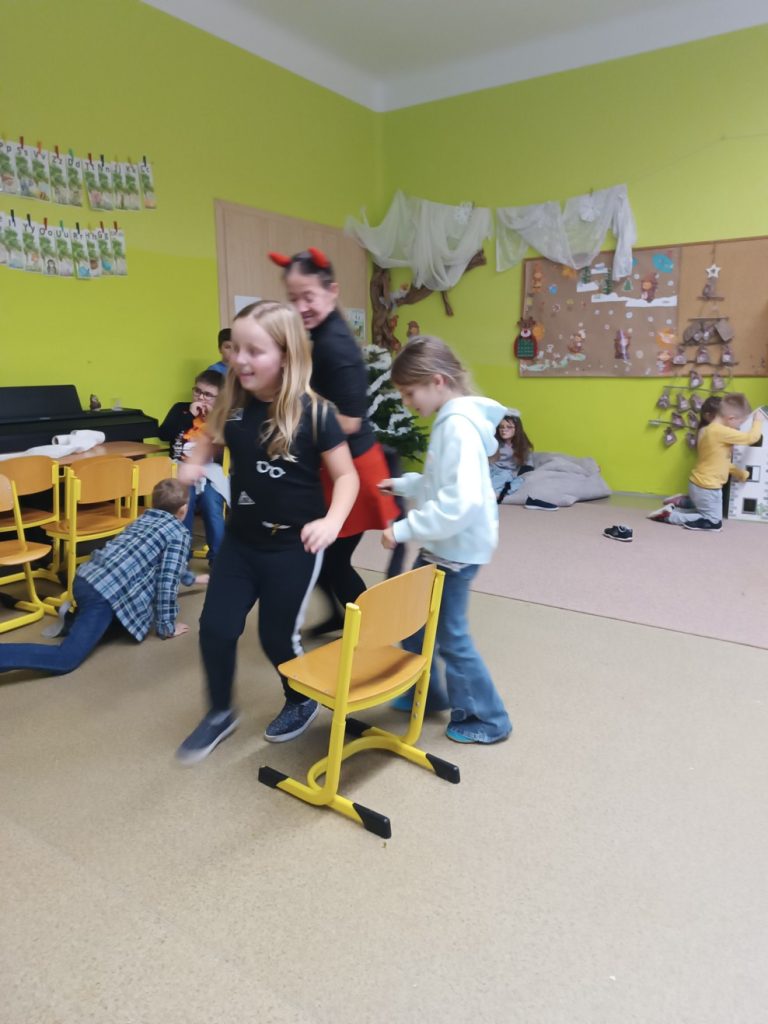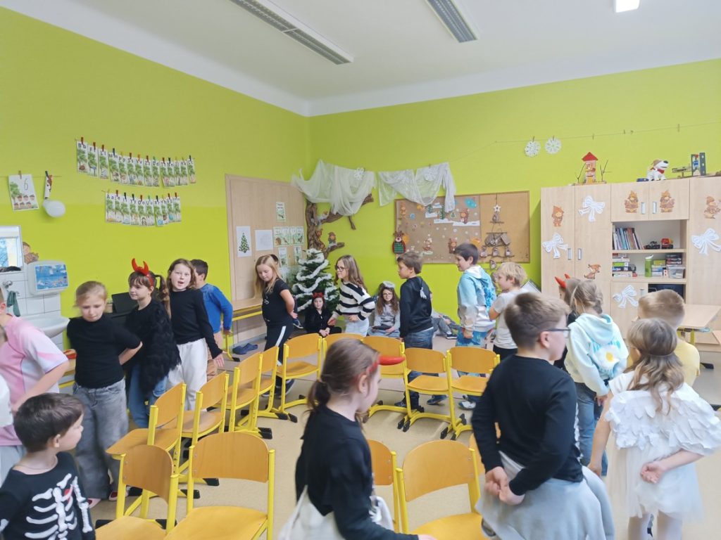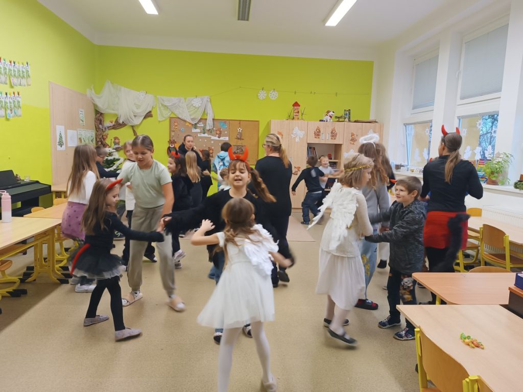 V pátek 5. prosince 2025 po dopolední návštěvě Mikuláše, anděla a čerta, to čertíci ve školní družině pěkně roztočili. A že byli velmi rozverní, bylo vše v duchu taneční zábavy a čertovského mumraje. Čertíci se naučili nové taneční choreografie, tancovali s koštětem, hráli na zmrzlíky a tancovali u židliček. Tanečně naladěné čertíky jsme pak vypustili do ulic.