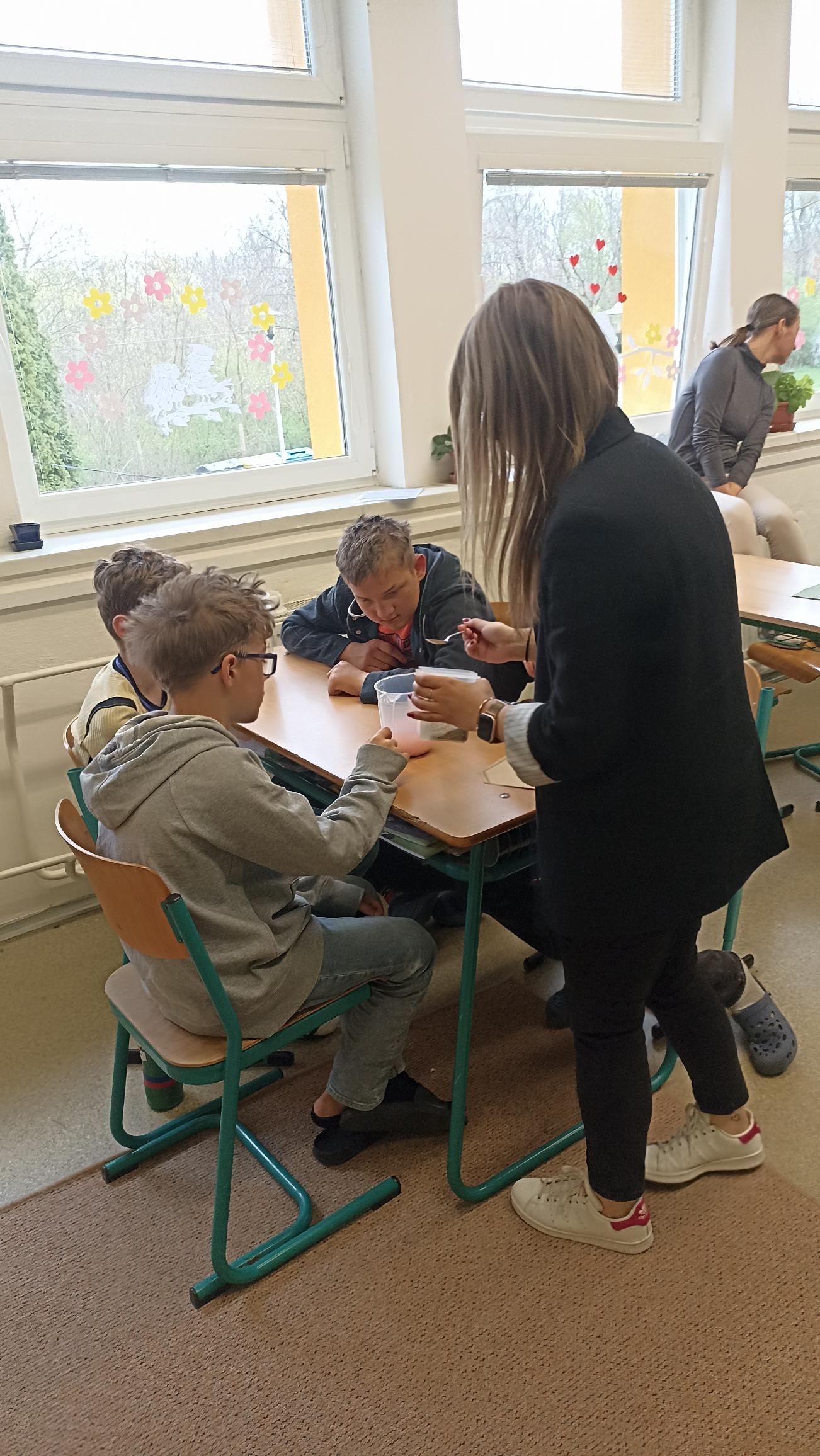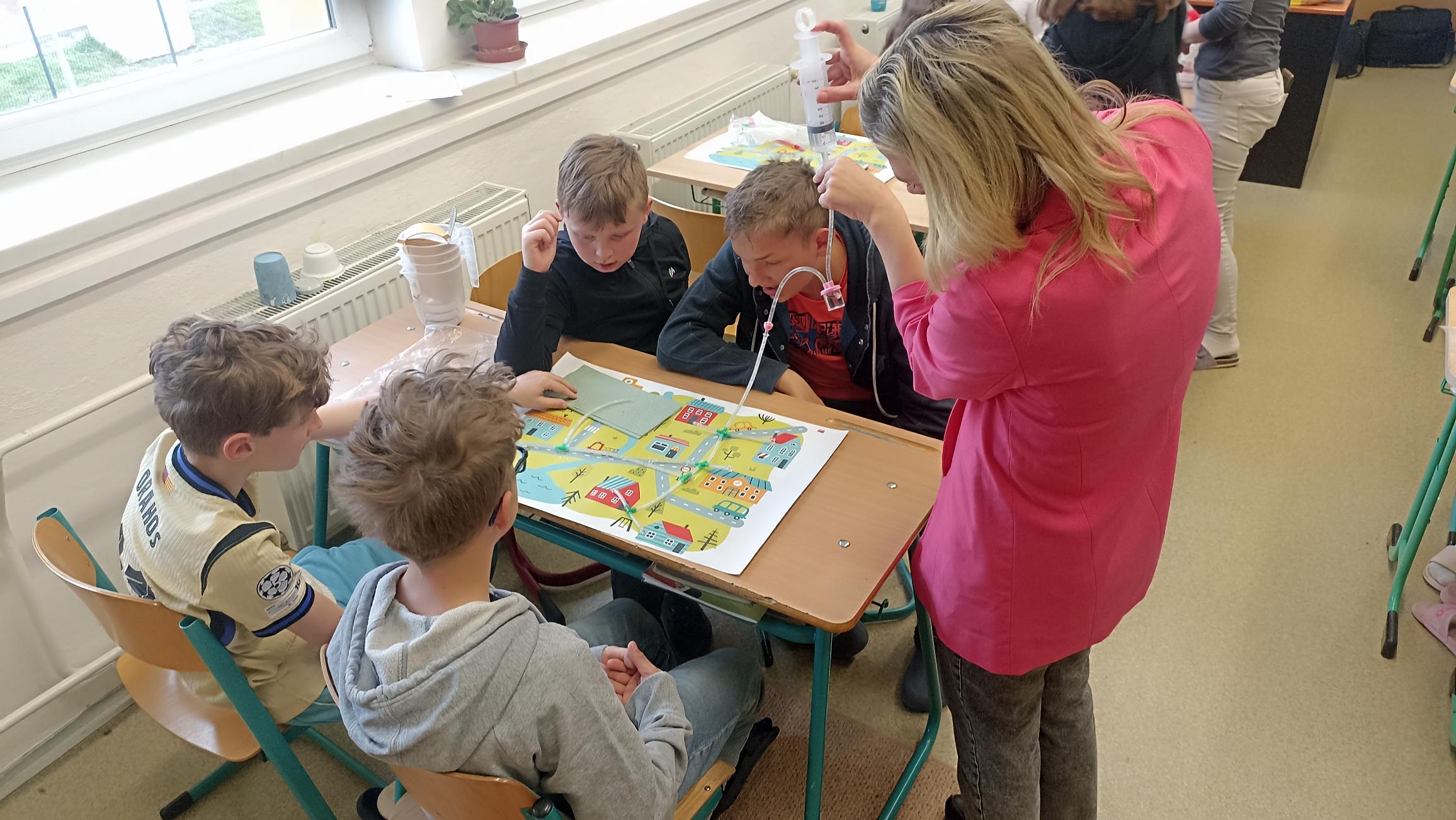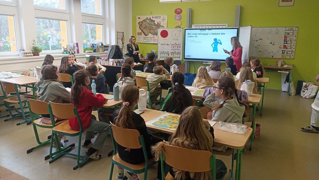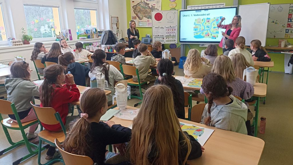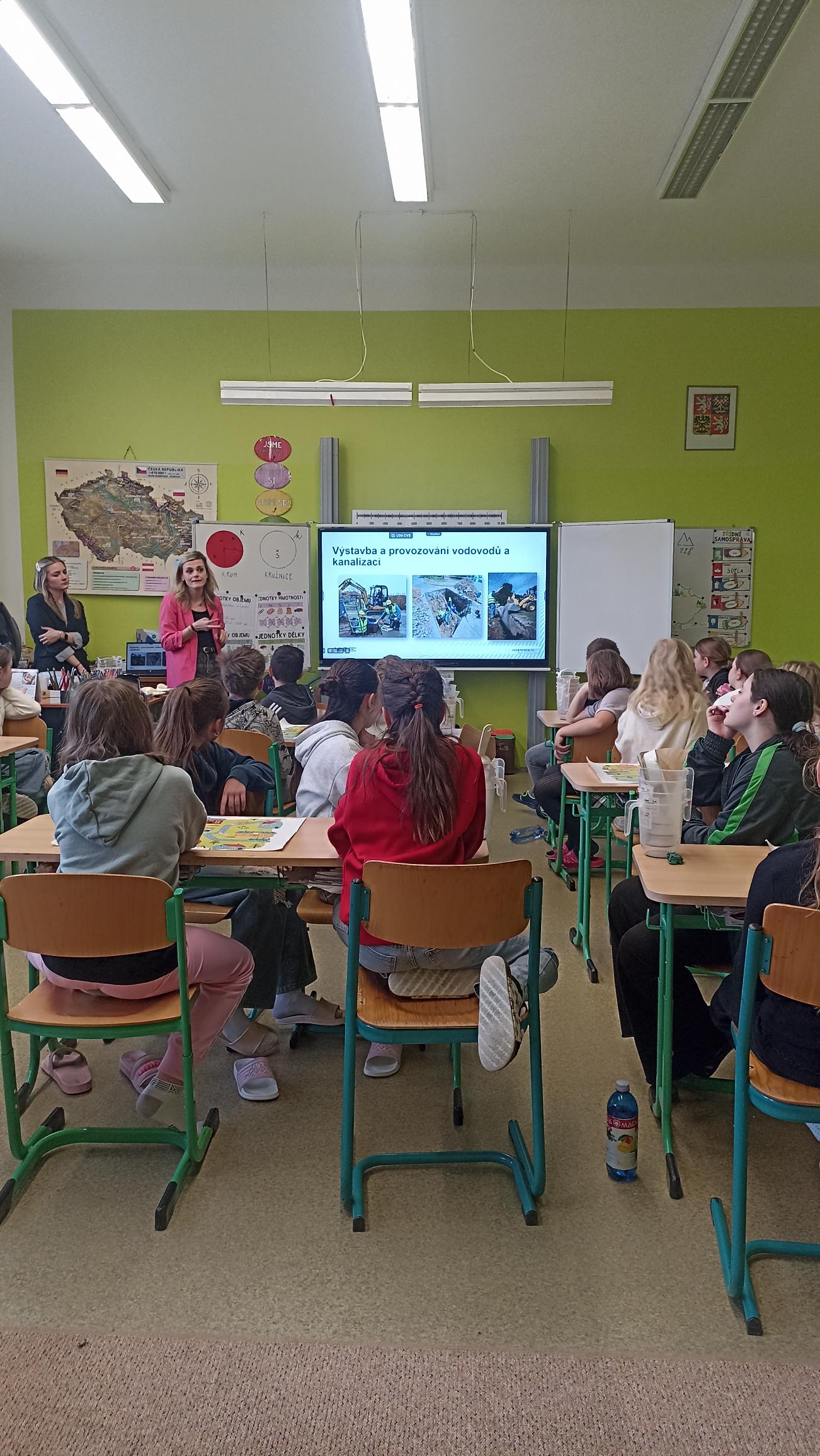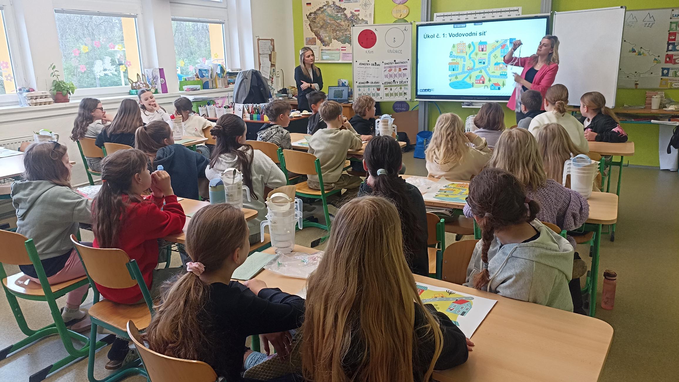 V úterý 14. dubna 2026 jsme se zúčastnili edukačního programu společnosti VAS Znojmo na téma VODA. Žáci třetích, čtvrtých a pátých ročníků se seznámili s koloběhem vody, procesem úpravy pitné vody i čištěním odpadních vod. Dozvěděli se také, jak s vodou šetřit a co do kanalizace rozhodně nepatří. Lektorky si pro děti připravily nejen poutavou prezentaci doplněnou fotografiemi a videi, ale také řadu interaktivních úkolů. Žáci si tak mohli vyzkoušet svoji zručnost v praxi – prvním úkolem bylo sestavení vodovodního řádu v městečku a ve druhém úkolu si děti samy zašpinily vodu za pomocí materiálů podobných těm, které se do odpadní vody skutečně dostávají, a poté ji v několika krocích opět vyčistily. Program děti velmi zaujal a aktivně se do všech činností zapojovaly. Na závěr si odnesly edukační brožuru, která hravou formou shrnuje všechna probíraná témata.